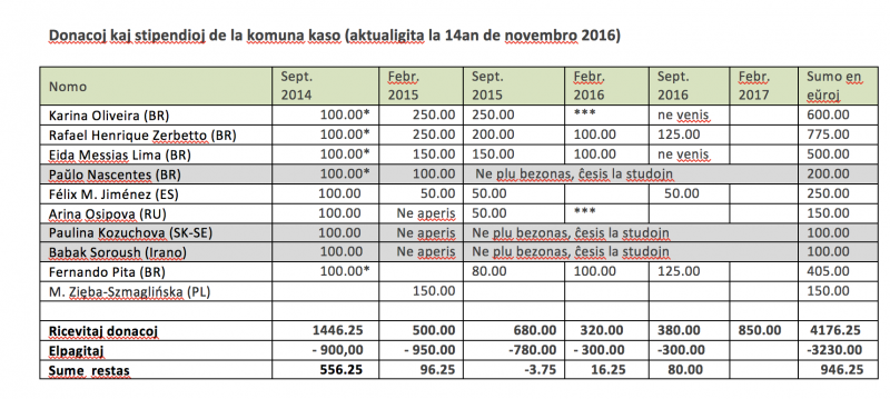 Kvankam ESF disponigos kelkajn stipendiojn, tiuj kovros nur la studkostojn. Multaj el la kandidatoj havas financajn malfacilaĵojn por akumuli la monon por la vojaĝkostoj, kiuj ekzemple el Brazilio povas esti mil eŭroj por ĉiu vojaĝo.