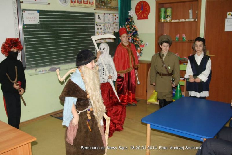 | 19. 01. 2014 – dimanĉo 9.00 – 10,00 sankta meso kun koncerto de polaj „kolendoj” 10,30 – kunveno en MOK por daŭrigi la seminarion 10,30 – 12,30 Du rakontoj pri jam ne ekzistantaj, antaŭaj etnoj de Sonĉa Tero: – Germanoj el Golkowice kaj pereintaj Judoj. 12,30 – 14,00 Diferencoj inter Nigraj kaj Blankaj Montaranoj - kaj koncerto de la aŭtenta folklora ensemblo „Nigraj Montaranoj” el Piwniczna. 14,00 – 15,00 tagmanĝo en baro ,,Pod Wierzbą”- ruĝa barĉo kun pasteĉetoj, kokaj eskalopoj, salatoj. Por vegetaranoj –legoma supo, plataj kukoj kun kazeo. 15,00 -16,00 libera tempo por prepari la ensemblon al „Kolendado” . |  |