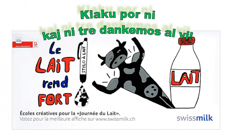 Do, se vi volas helpi kaj subteni ilin, inter la 3-17a de aprilo 2013 bonvolu voĉdoni por ilia giganta afiŝo sur la paĝo: www.swissmilk.ch/journeedulait