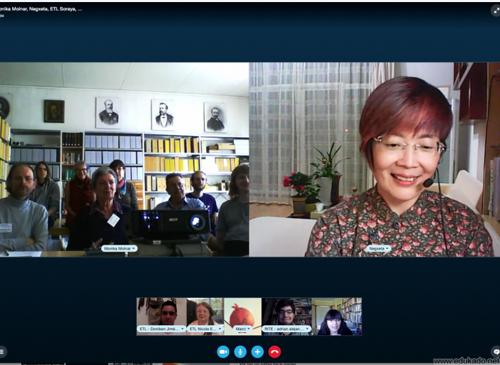 Kun la grupo de pli grandaj lernantoj post la interkonatiĝo Katalin prelegis pri la lingvosituacio de sia familio, kun speciala intereso pri la filo, Marteno, kiu parolas kaj studas jam 9 lingvojn. Tio povis esti impresa stimulaĵo por la samaĝaj junuloj. Fine la instruistino, Mónika, devis forlasi la ĉambron, dum Katalin instruis hungarajn frazojn al la lernantoj. Ilin la infanoj prezentis al Mónika fine de la leciono. Pri ambaŭ skajpaj lecionoj venis tre pozitivaj opinioj de la lernantoj. Certe ripetenda iniciato. Ĉi-jare nia paĝaro modele kaj aktive partoprenis kaj partoprenigis aliajn en la eventoj de la Eŭropa Tago de Lingvoj. Sekvontjare ni provu eĉ pli vaste kaj pli varie dediĉi nin al la temo. Dankon al ĉiuj partoprenintoj kaj kontribuintoj. Pliajn fotojn vi povas vidi en la koncerna ALBUMO. |