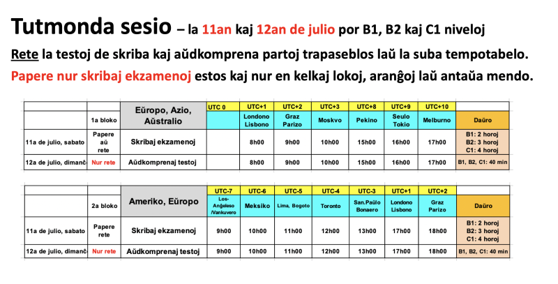 Atentu, ekzameno en ajna nivelo povos okazi nur se aliĝas al tiu nivelo minimume 12 personoj (sume en la papera kaj reta formoj).